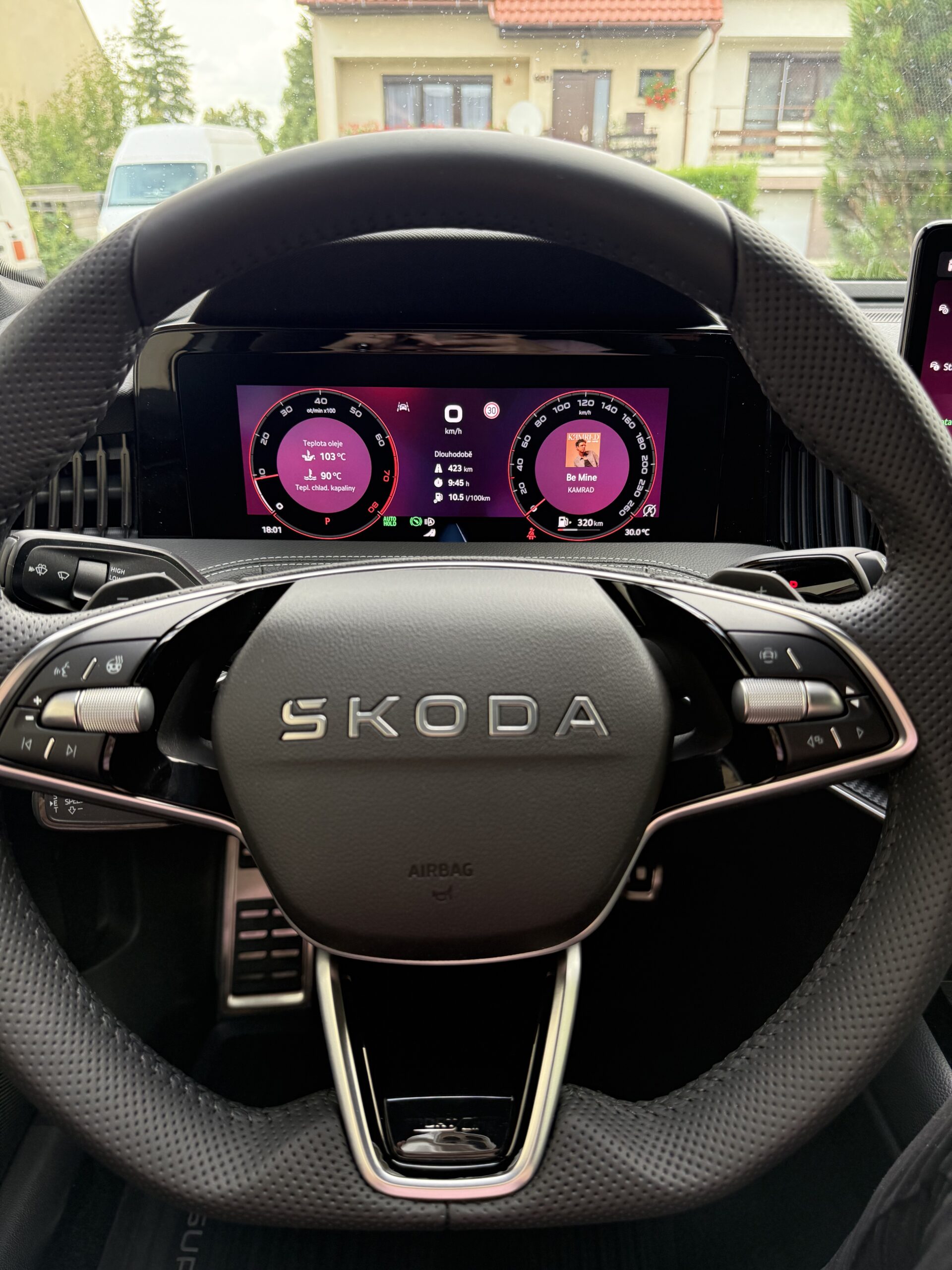 Výbava:  Sportovní sedačky Sportline, automatická 7 st. převodovka, Matrix-Led světlomety, velký dotykový displej, parkovací kamera 360 stupňů, Alu kola 19' Torcular, adaptivní podvozek DCC + sport, tónované skla, klimatizované masážní přední sedadla, rozpoznávaní dopravních značek, systém varování před nehodou, hlídaní jízdních pruhů, asistent pro jízdu na dálnici, zrcadlení mobilního telefonu, automatická dálková světla, ovládání auta přes aplikaci, systém hlasového ovládání s AI inteligencí, navíc sada koberečků atd.